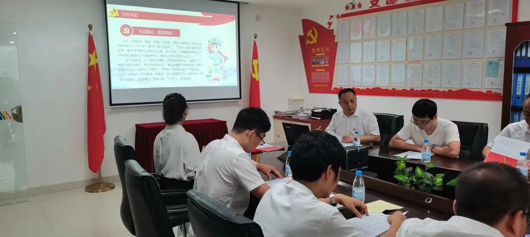 4 支部書記上黨課 支部書記師體偉給黨員上了《重溫入黨誓詞?牢記初心使命》的黨課,希望黨員干部通過黨課獲得深刻認(rèn)識(shí),深化對(duì)“不忘初心、牢記使命”的理解,傳承紅色基因,強(qiáng)化黨性觀念。