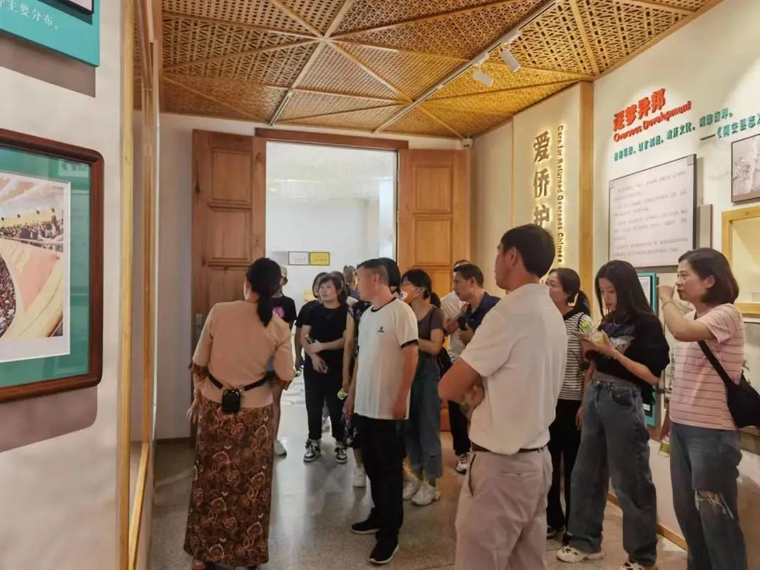 職工們參觀了具有濃郁異國色彩的南洋竹壩。這里陸陸續(xù)續(xù)安置了自20世紀(jì)60年代以來,來自印尼、越南、柬埔寨、泰國、緬甸、新加坡、馬來西亞、菲律賓等八個(gè)國家的5000多名歸僑,他們給這里帶來了異國的風(fēng)情舞蹈、特色美食、斑斕服飾、風(fēng)土人情。